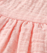 Let your baby bloom in comfort and cuteness with our Peach Blush Crinkled Muslin Sleeveless Frock, crafted from premium double-layered muslin cotton for ultimate softness. The frock’s light crinkled texture gives it a naturally breezy feel, making it perfect for warm weather and everyday play.