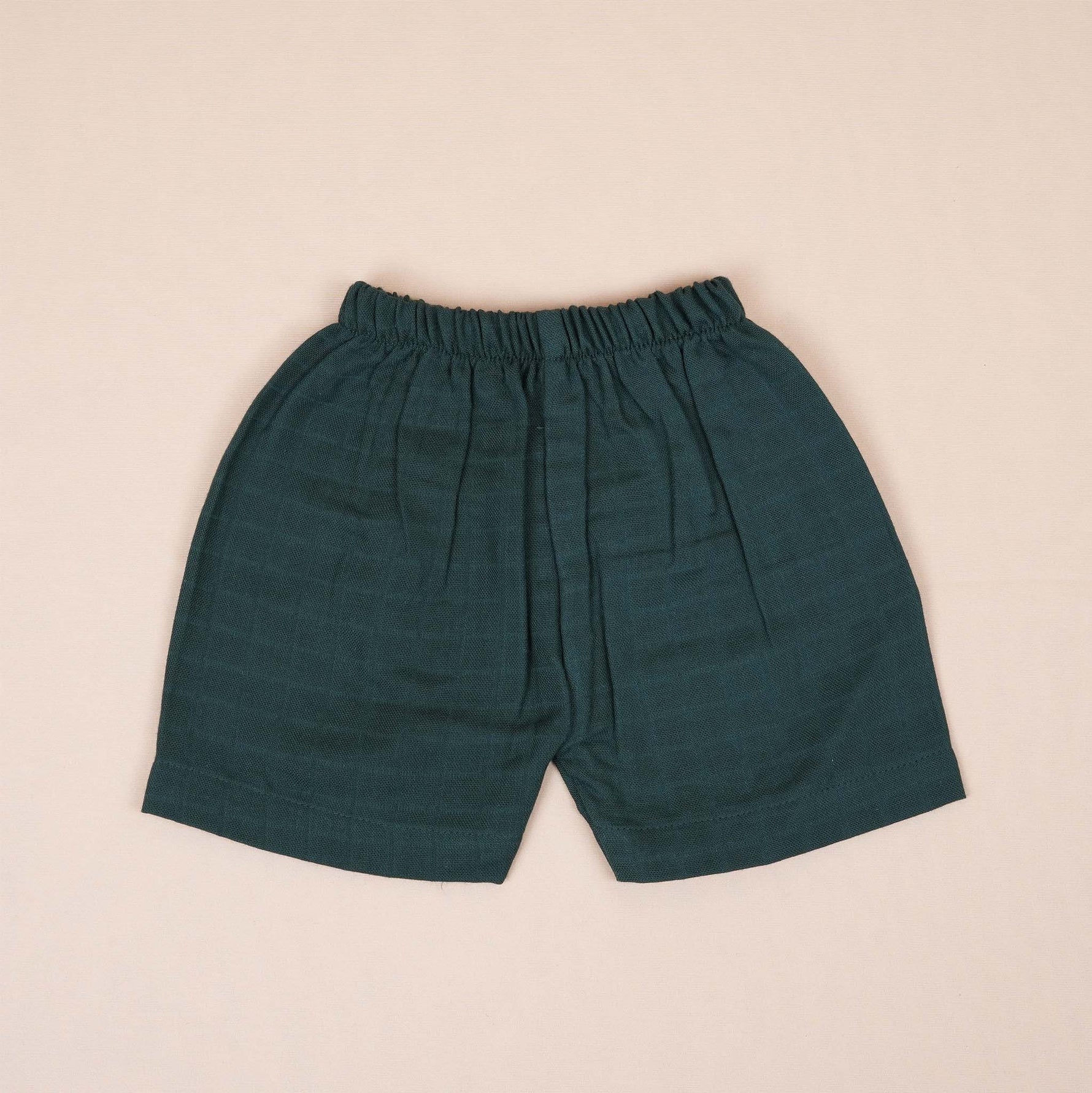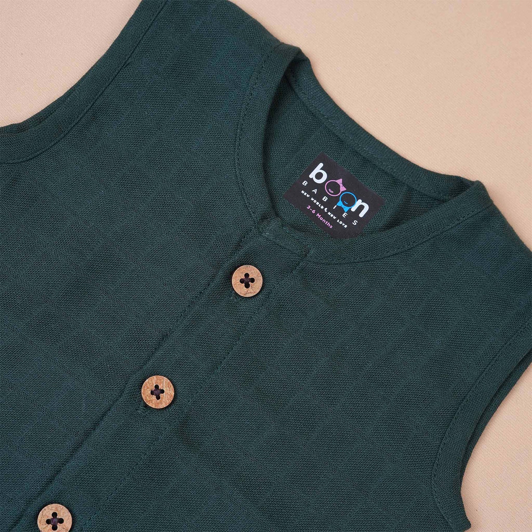 Dark Green Muslin Baby Jabla & Shorts – Premium Comfort for Babies