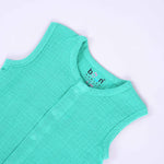 Keep your baby feeling cool and looking cute in our Mint Blue Crinkled Muslin Jabla and Shorts Set. Crafted for all-day ease, this sleeveless jabla and shorts combo is made from lightweight crinkled muslin that's gentle on delicate skin. The mint blue shade is calm, refreshing, and perfectly unisex.