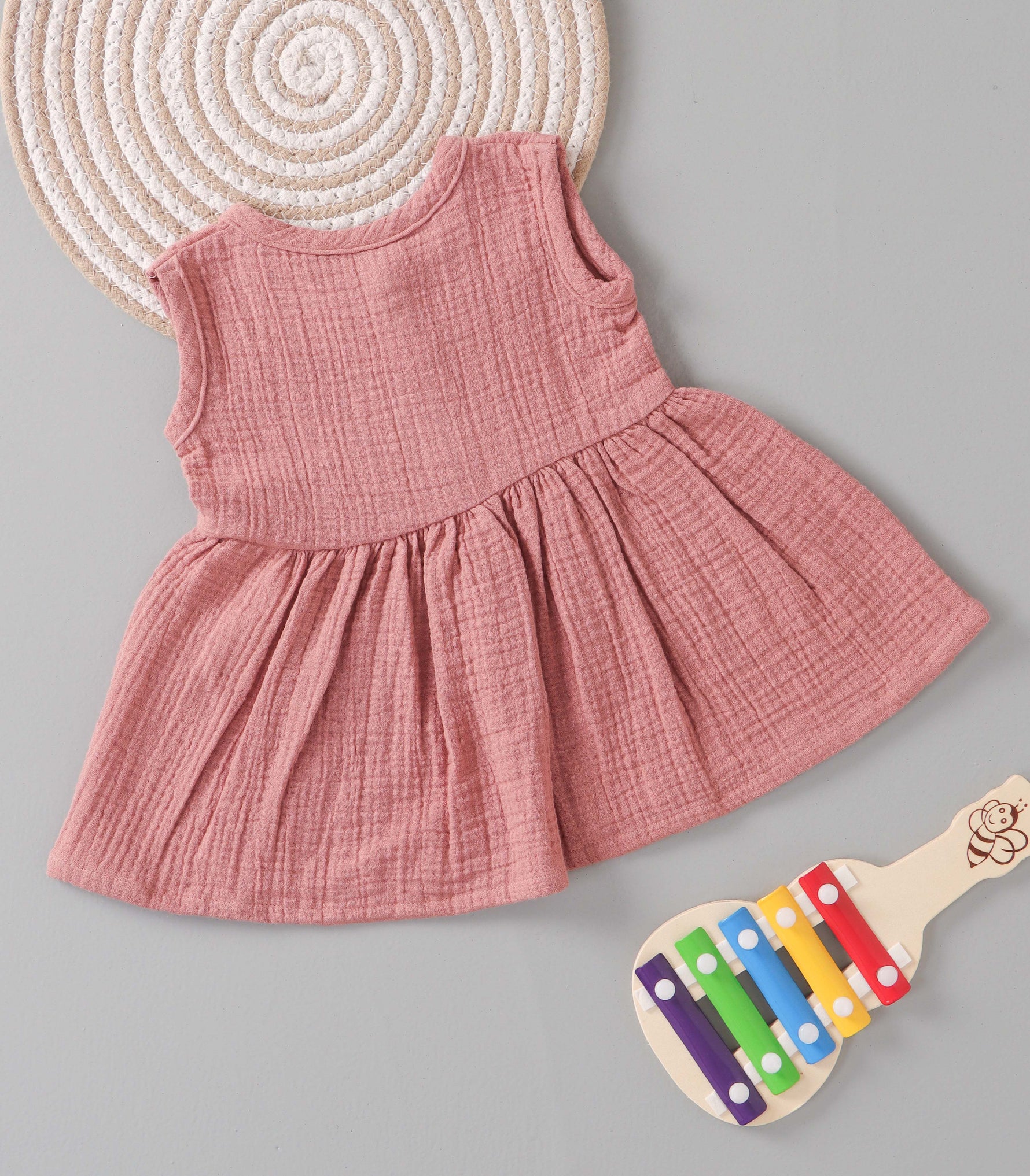 Dusty Rose Crinkled Muslin Sleeveless Baby Frock
