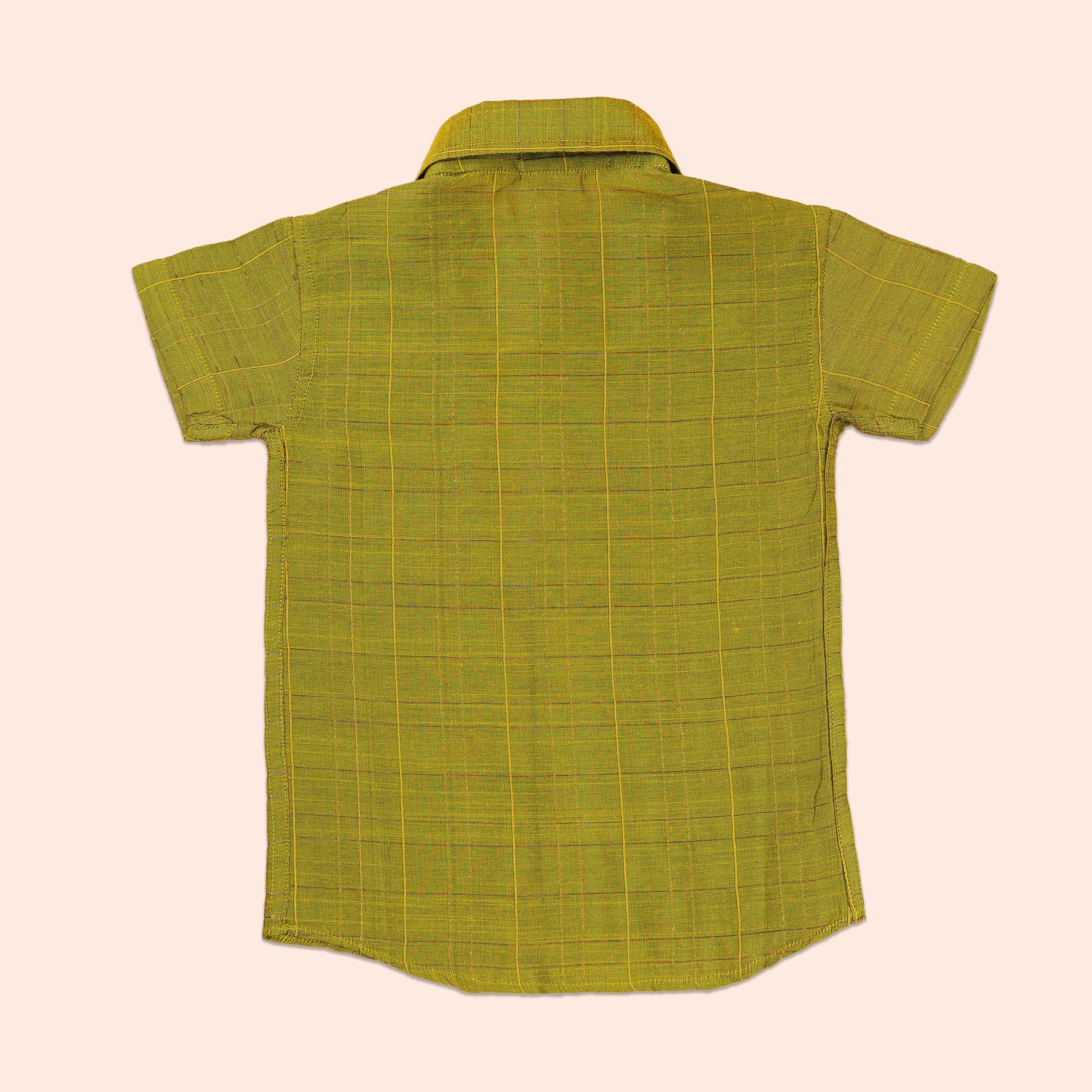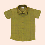 Classic Mustard Silk Festive Check Shirt & Dhoti Set for Boys