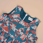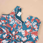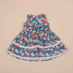 Add a touch of grace to your little girl's wardrobe with this cotton frock for girls, featuring a stunning floral print on a deep blue base. The vibrant mix of red and white floral motifs makes it an eye-catching outfit, perfect for casual wear, festive gatherings, or birthday parties.