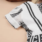 Girls Premium Cotton Casual Bow Frock – Elegant Black & White Stripe Pattern