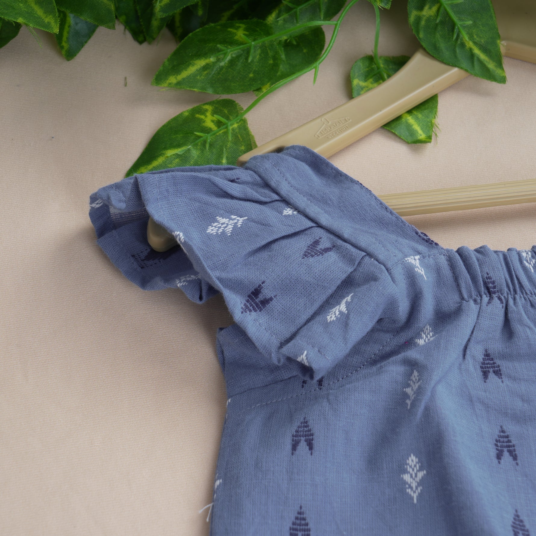 Girls Denim Blue Handloom Cotton Frill Top & Shorts