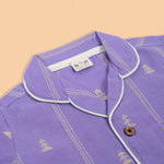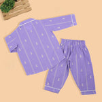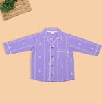 Introduce your little one to a world of luxury and comfort with this lavender nightwear set. Made from breathable cotton fabric, this set includes a long-sleeve button-up shirt with a neat piped trim and a matching pajama pant with an elastic waistband for a snug yet flexible fit. The soothing lavender shade adds a touch of elegance, making bedtime extra special.