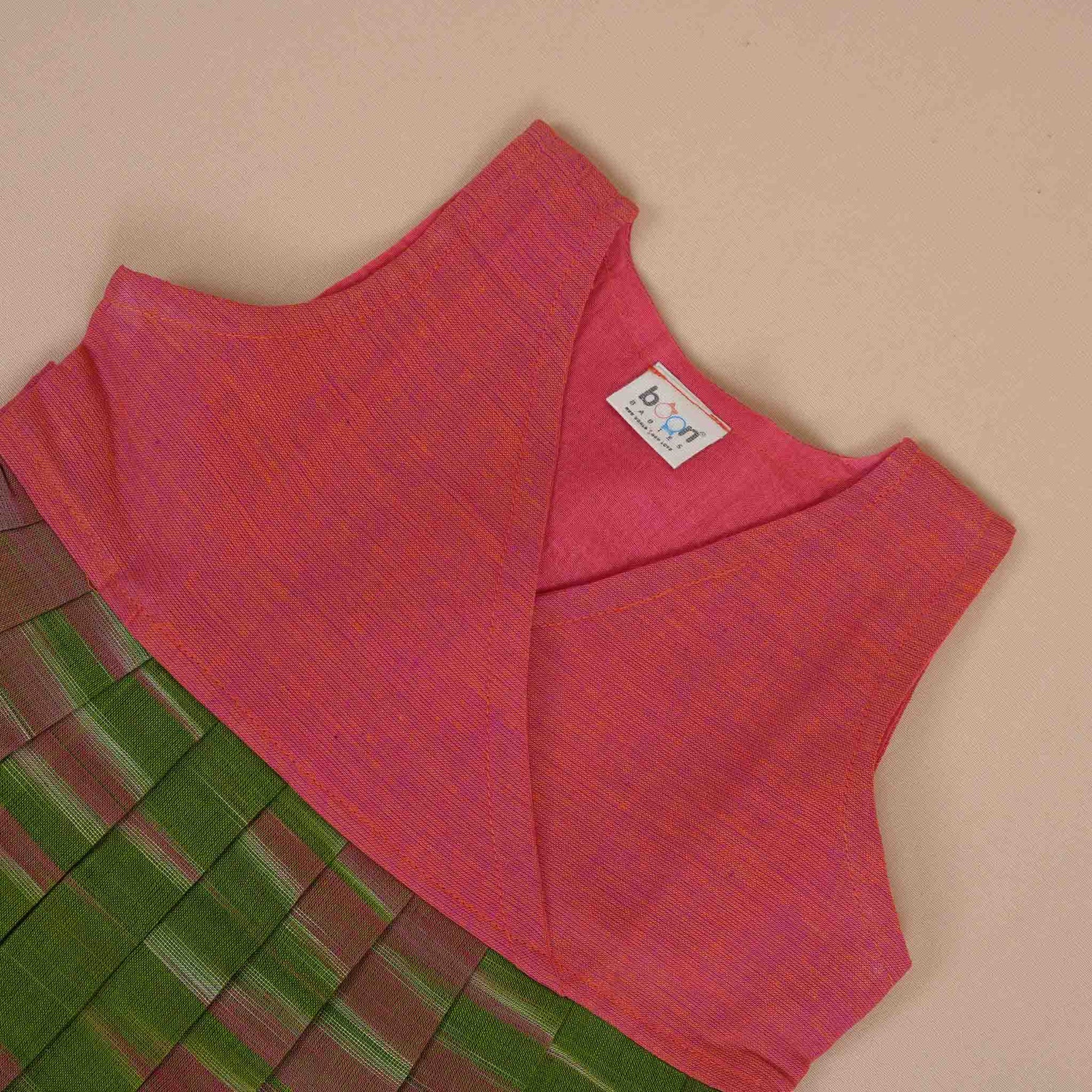 Vibrant Cotton Frock for Girls – Pink & Green