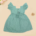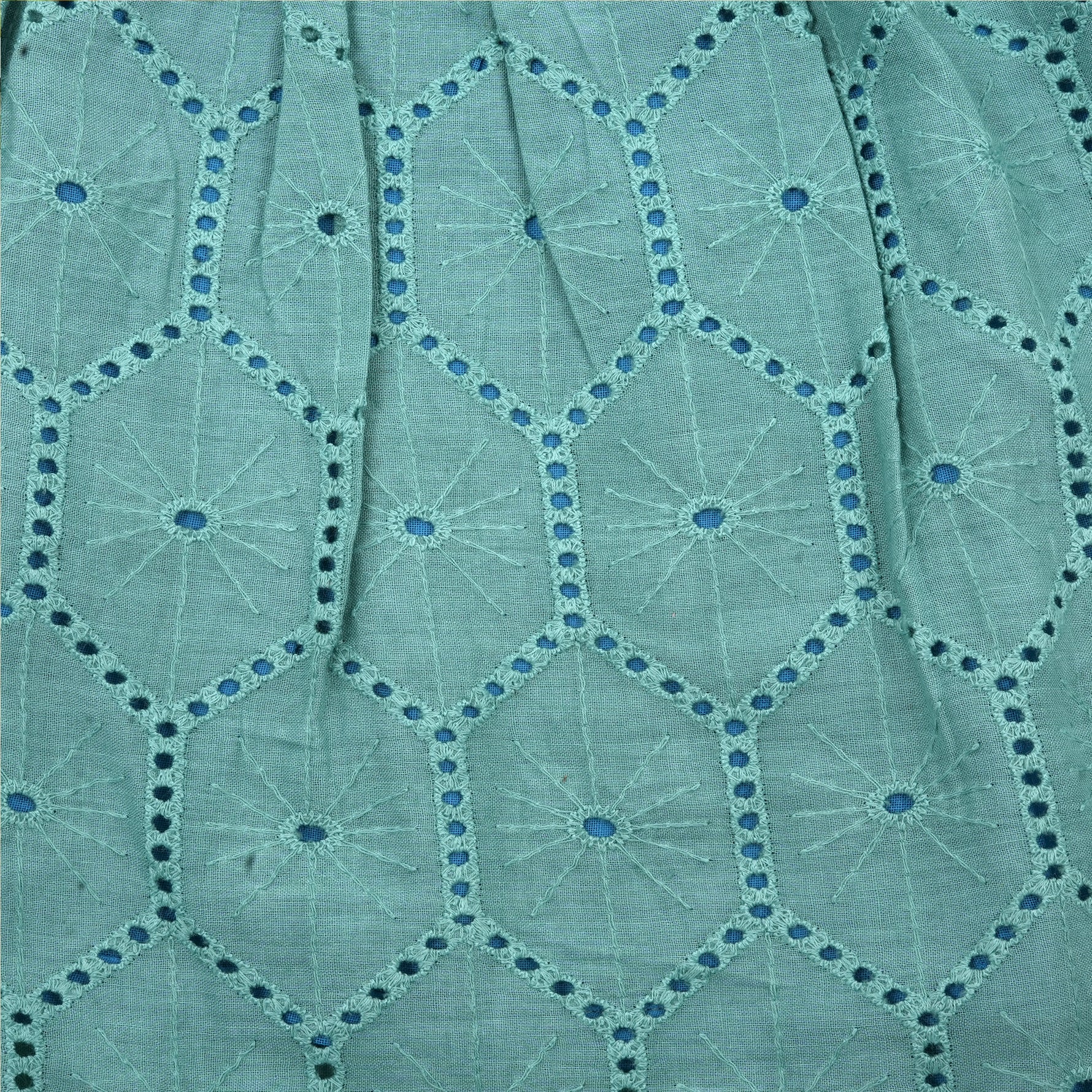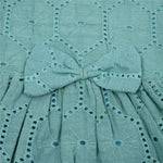 Add a splash of elegance to your little one's wardrobe with our blue Hakoba frock, thoughtfully crafted from breathable cotton. This frock features a delicate Hakoba embroidery pattern in floral eyelets, beautifully arranged across the bodice and skirt for a timeless yet playful look. The tiered flare adds graceful movement, while puffed sleeves and a Peter Pan collar give it a charming vintage twist.