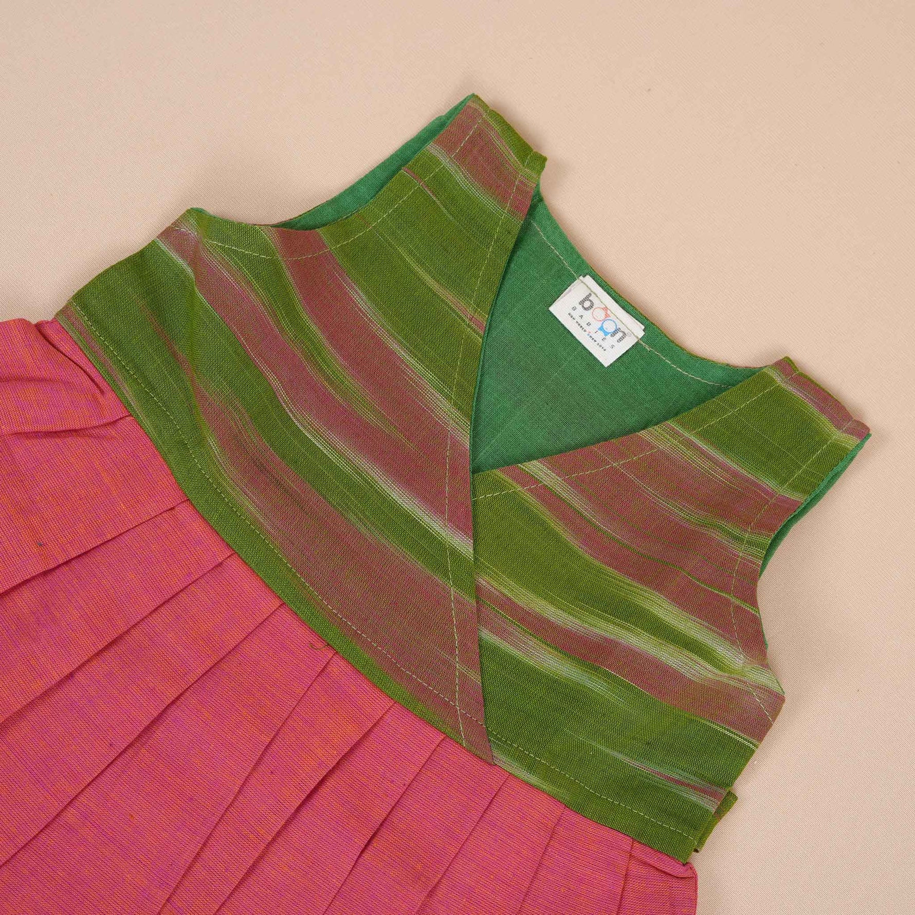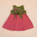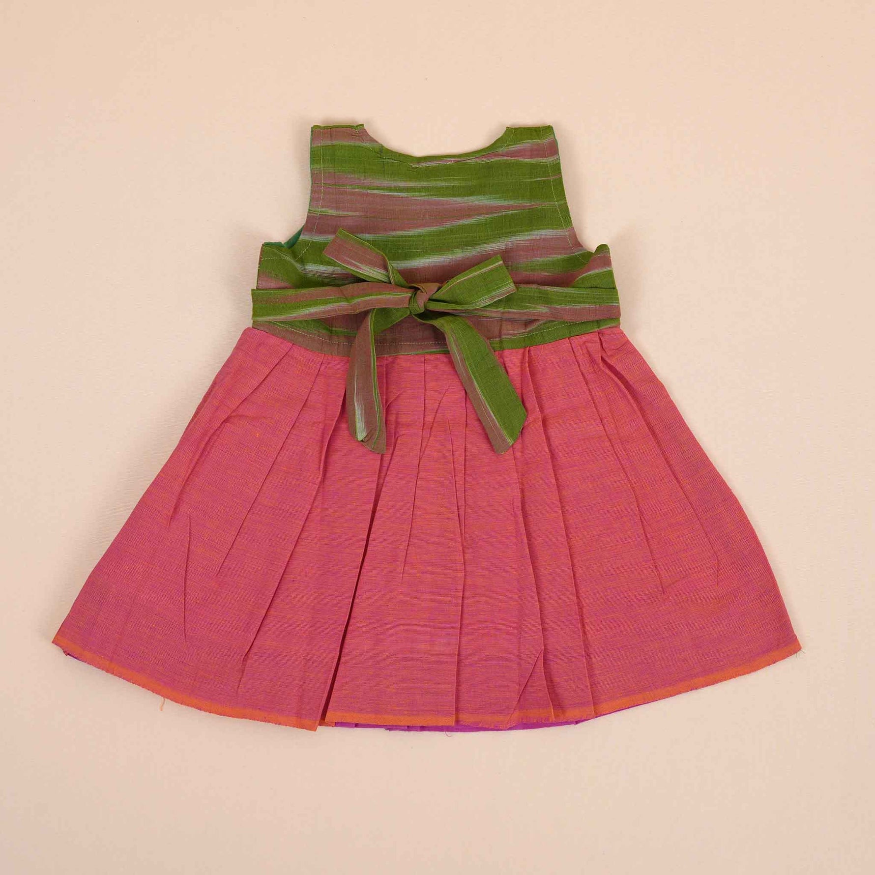 Let your little princess shine in this vibrant cotton frock for girls, featuring a delightful green and Purple color combination. The sleeveless bodice is designed with a stylish crossover neckline, while the pleated flare adds a traditional touch. Made from premium South cotton, this dress ensures comfort while keeping your child stylish during festive occasions.