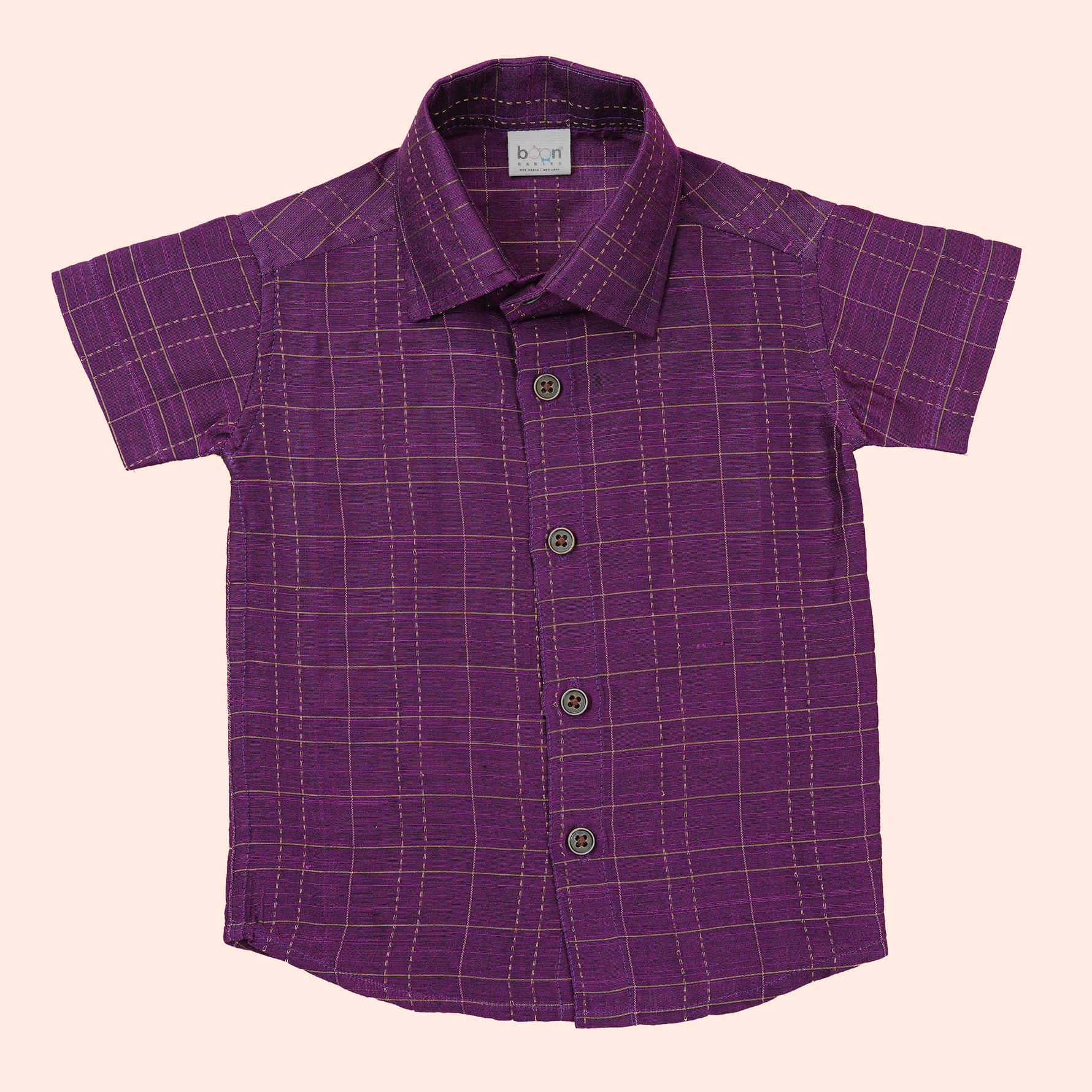 Let your little champ stand out in true festive elegance with our Majestic Purple Silk Festive Check Shirt & Dhoti Set.