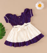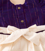 Purple & Cream Silk Puff Frock with Golden Zari Stripes