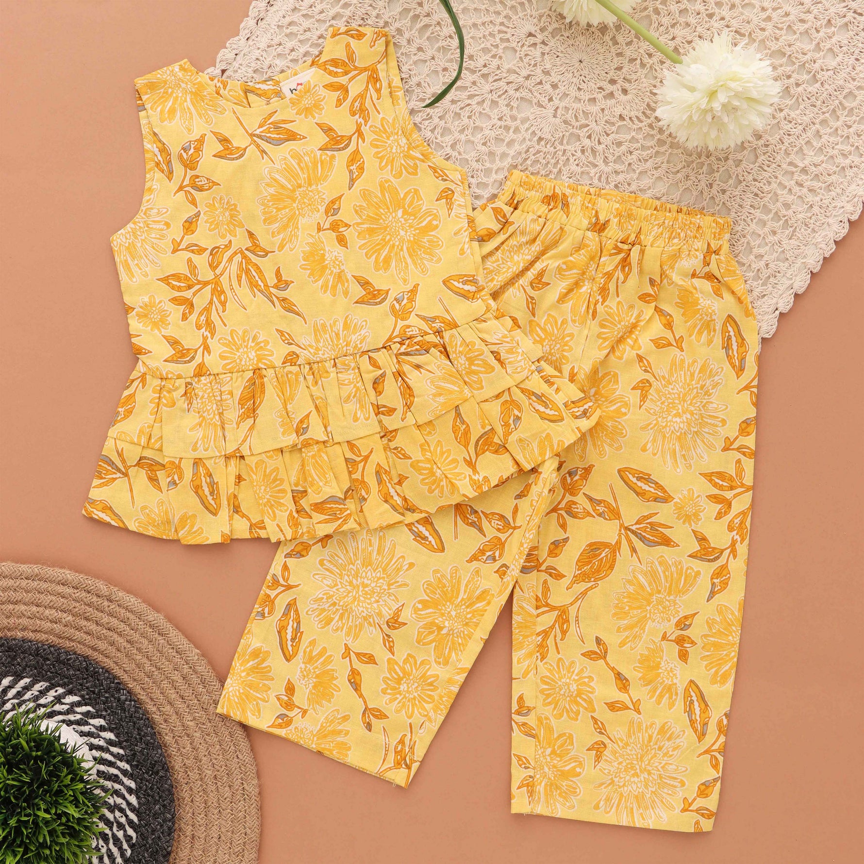 Yellow Floral Cotton Top & Pant Set with Ruffle Detail – Baby Girls