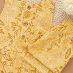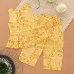 Dress your little sunshine in our Yellow Floral Top & Pant Set, crafted from soft slub cotton with an attached lining for extra comfort. The sleeveless peplum-style top with double-layered ruffles adds a playful charm, while the matching elasticated pants ensure a relaxed fit for all-day wear. Perfect for birthdays, outings, or everyday cuteness, this co-ord set is designed to keep your baby girl stylish and comfy.