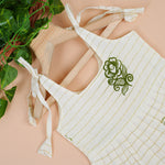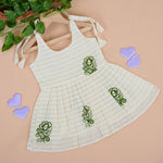 Cream & Olive Border Frill Knot Frock – Handcrafted Cotton
