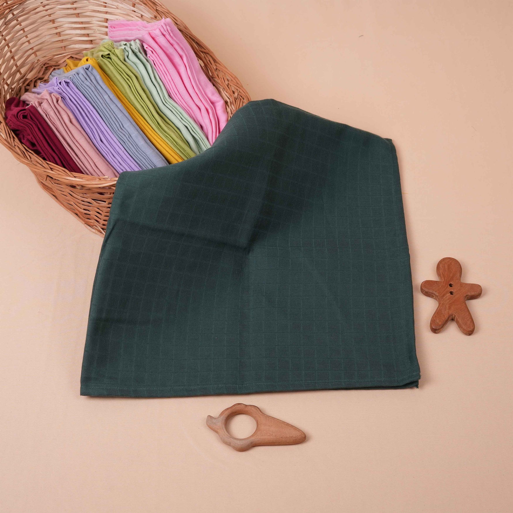 Wrap your baby in the comfort of our dark green muslin baby towel, designed to be ultra-soft, breathable, and gentle on delicate skin. This muslin towel is made from GOTS-certified organic fabric, ensuring safety and durability for everyday use. Measuring 70 x 70 cm, it is the perfect size for newborns, infants, and toddlers. The dark green color adds a stylish touch, making it a practical and aesthetic choice for bath time, diaper changes, and swaddling.