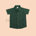 Give your little one a graceful ethnic makeover with our Emerald Green Silk Shirt & Dhoti Set. This traditional combo blends rich color with a luxurious silk finish, making it ideal for any celebration. The elegant shirt pairs effortlessly with the classic cream dhoti for a complete festive look.