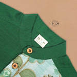 Introduce timeless tradition into your child’s wardrobe with Boon Babies’ Bottle Green Silk Panel Shirt and Cream Pattu Dhoti Set – perfect for boys aged 12 months to 5 years. The set features a bottle green shirt with a contrast floral embroidered panel and a classic cream pattu dhoti finished with a golden border. A graceful outfit for special occasions like temple visits, festivals, or weddings.