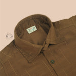 👕 Shirt: Coffee brown silk shirt with vertical zari detailing and buttons