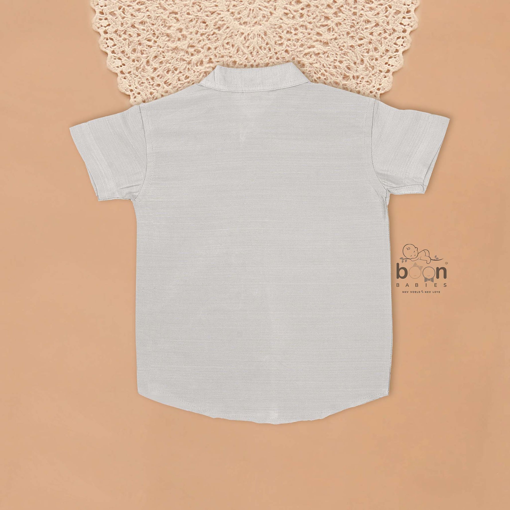 Light Grey Silk Panel Shirt with Pattu Dhoti for Boys – Festive Traditional Wear