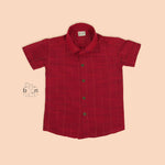 Celebrate your little one’s milestones in style with our Dark Maroon Silk Shirt and Dhoti Set. This traditional ensemble features a deep maroon silk shirt with subtle vertical zari stripes, paired with a classic cream dhoti adorned with a golden zari border. Crafted for elegance and ease, this set is perfect for weddings, naming ceremonies, and religious celebrations.