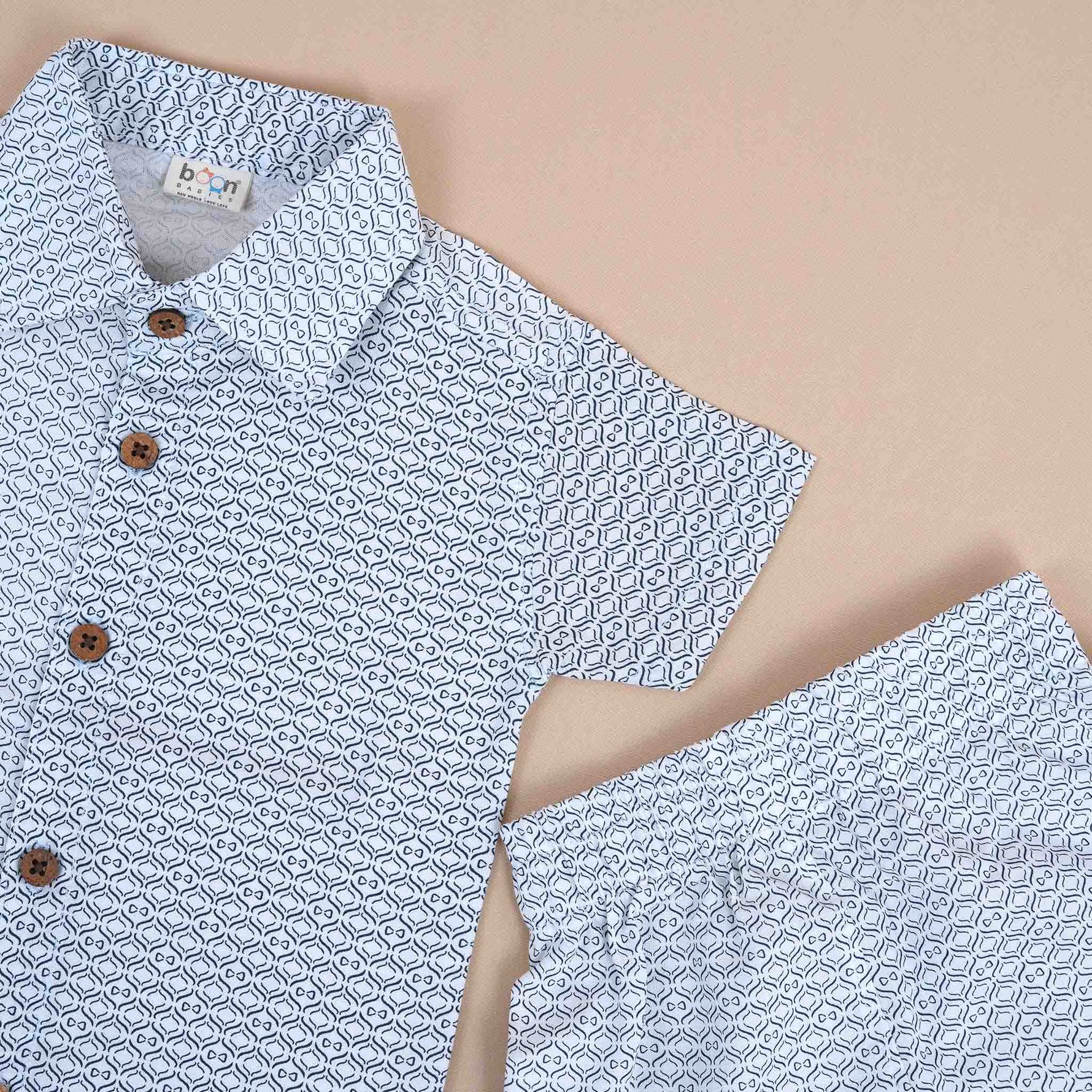 Boys Striped Cotton Shirt & Shorts – Chevron Mix