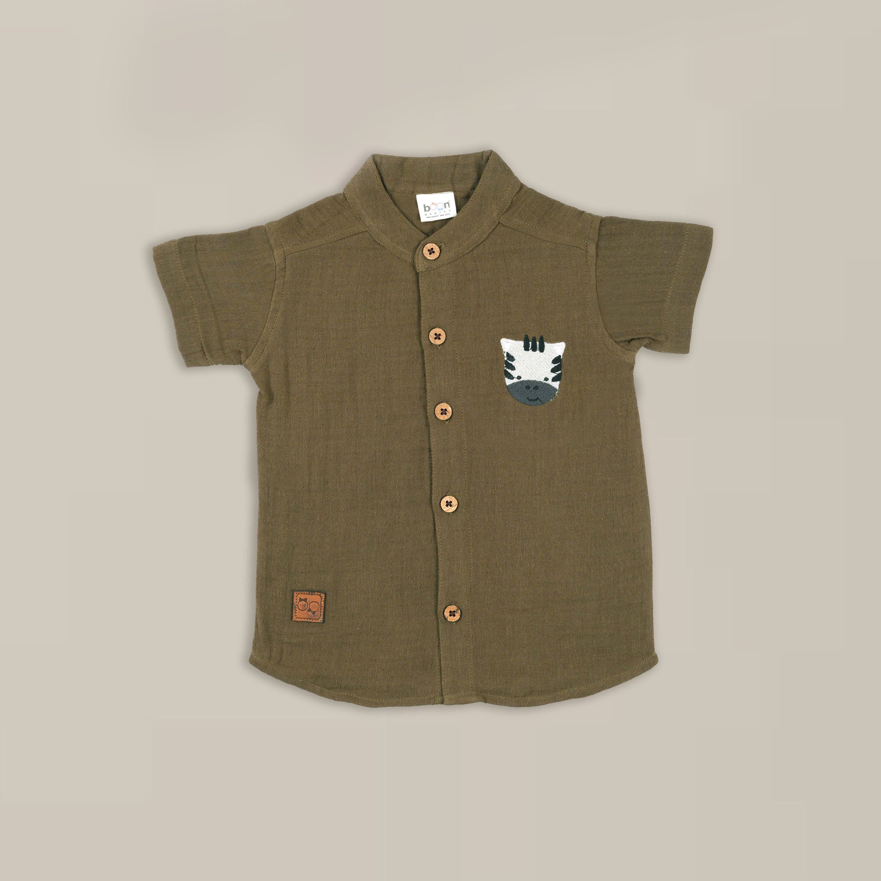 Olive Green Muslin Shirt & Shorts – Zebra Embroidery