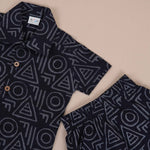 Boys Black Geometric Cotton Shirt and Shorts Set
