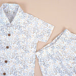 Boys White Leafy Print Cotton Shirt and Shorts Set