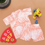 Peach Tropical Leaf Printed Shirt and Shorts Set for Boys – Open Collar Style