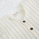 Make your baby girl look adorable and festive with our Cotton Frill Baby Frock, crafted from soft breathable cotton and designed with elegant black floral prints. The frock features golden zari borders along the hem and frill sleeves, giving it a festive and traditional charm. With wooden button detailing and flutter frills, this frock is as stylish as it is comfortable. Perfect for newborns to 12 months, it’s an ideal choice for birthdays, temple visits, festive occasions, or gifting.
